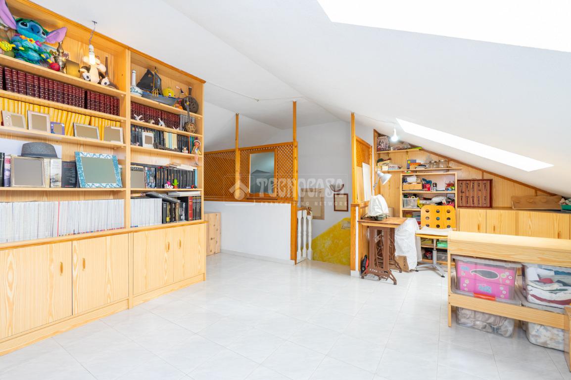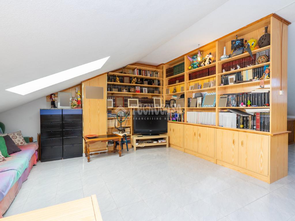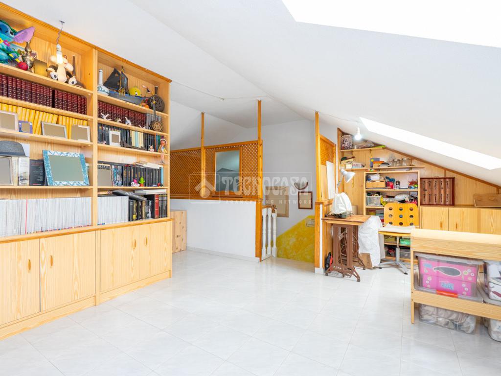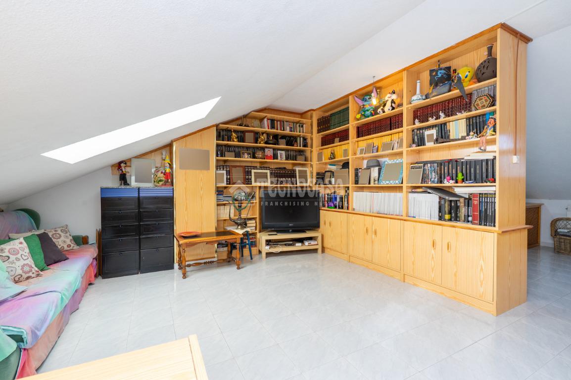 Consta de planta baja con amplio salon que da acceso al patio privado, cuaarto de aseo y cocina, primera planta con cuatro dormitorios con armarios empotrados y dos cuartos de baño completos uno de ellos en suite. Buhardilla con un salon, bliblioteca y habitacion y preinstalacion para poder habilitar un cuarto de baño.